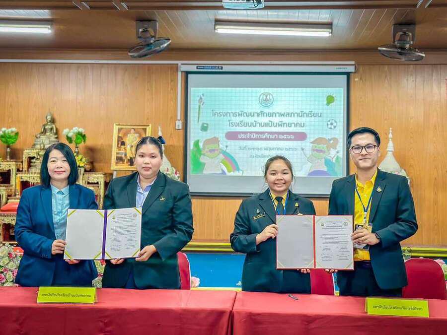 วันที่ 27-28 พฤษภาคม 2566 ฝ่ายกิจการนักเรียน โรงเรียนบ้านแป้นพิทยาคม ได้จัดโครงการพัฒนาศักยภาพสภานักเรียนโรงเรียนบ้านแป้นพิทยาคม ประจำปีการศึกษา 2566 โดยมีนางกิ่งกาญจน์ โสภาวิบูลรัตน์ ผู้อำนวยการโรงเรียนบ้านแป้นพิทยาคมเป็นประธานในพิธีเปิดโครงการ ซึ่งโครงการนี้มีวัตถุประสงค์เพื่อให้นักเรียนได้มีความสามัคคี ในหมู่คณะ มีความกล้าแสดงออกต่อสิ่งที่ควร และเพื่อฝึกฝนให้นักเรียนเกิดภาวะการเป็นผู้นำที่ดีของโรงเรียนในอนาคต และร่วมบันทึกข้อตกลงความร่วมมือสร้างเครือข่าย MOU ร่วมกับโรงเรียนเวียงเจดีย์วิทยา ณ ห้องโสตทัศนศึกษาโรงเรียนบ้านแป้นพิทยาคม S:0