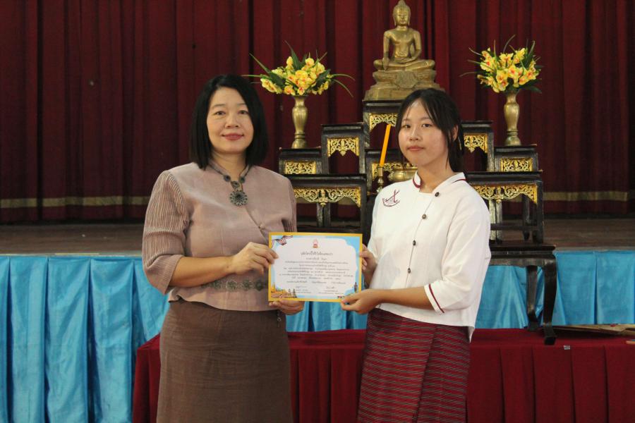 มอบเกียรติบัตรให้กับนักเรียนที่ร่วมโครงการ "ค่ายแกนนำดีศรีลำพูน" รุ่นที่ 16