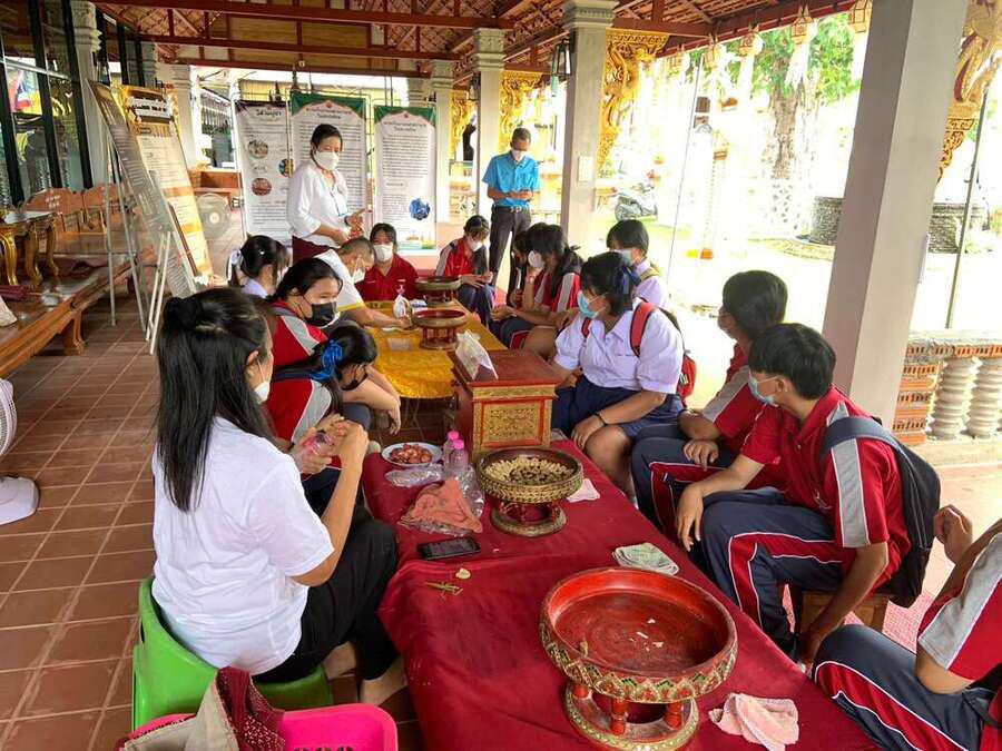 วันที่ 6 มิถุนายน 2566 โรงเรียนบ้านแป้นพิทยาคม นำนักเรียนชั้นมัธยมศึกษาปีที่ 4 เข้าร่วมศึกษาแหล่งเรียนรู้ภูมิปัญญาท้องถิ่น โดยมีว่าที่ร้อยตรีสิทธิชัย วงค์คม นายไพศาล ก้อนใจ และนักศึกษาฝึกประสบการณ์วิชาชีพครู เป็นครูผู้ควบคุมนักเรียน ณ วัดมหาวัน ตำบลในเมือง อำเภอเมืองลำพูน จังหวัดลำพูน S:0