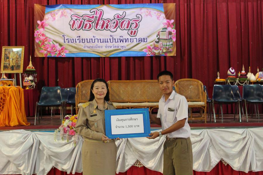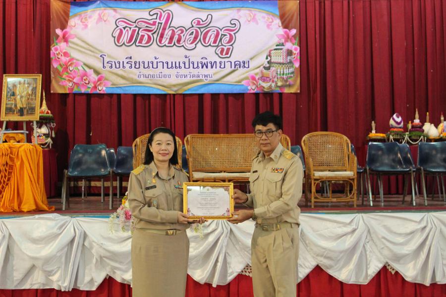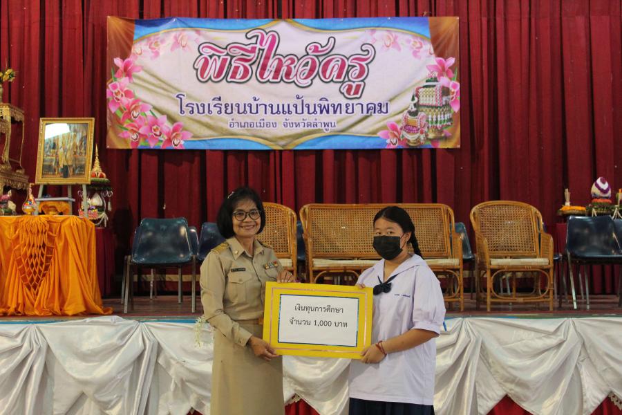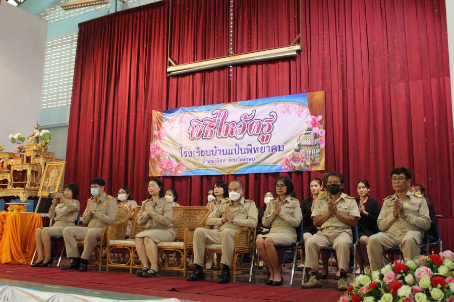 วันที่ 22 มิถุนายน 2566 นางกิ่งกาญจน์ โสภาวิบูลรัตน์ ผู้อำนวยการโรงเรียนบ้านแป้นพิทยาคม เป็นประธานในพิธีไหว้ครู ประจำปีการศึกษา 2566 โดยมี นายราชัน คำบุญเรือง รองผู้อำนวยการโรงเรียนบ้านแป้นพิทยาคม พร้อมด้วย คณะครู บุคลากรทางการศึกษา และนักเรียนเข้าร่วมกิจกรรม เพื่อส่งเสริมให้นักเรียนแสดงความเคารพ ความกตัญญูกตเวทิตาและรำลึกถึงพระคุณครู ผู้ประสิทธิ์ ประสาทวิชา พร้อมนี้ได้มอบเกียรติบัตรแด่คณะครูผู้มีผลงานดีเด่นด้านต่าง ๆ และมอบทุนการศึกษาแก่นักเรียนที่เรียนดี ความประพฤติดี และยากจน จำนวน 50 ทุน เป็นเงิน 78,500 บาท ณ หอประชุมโรงเรียนบ้านแป้นพิทยาคม S:0