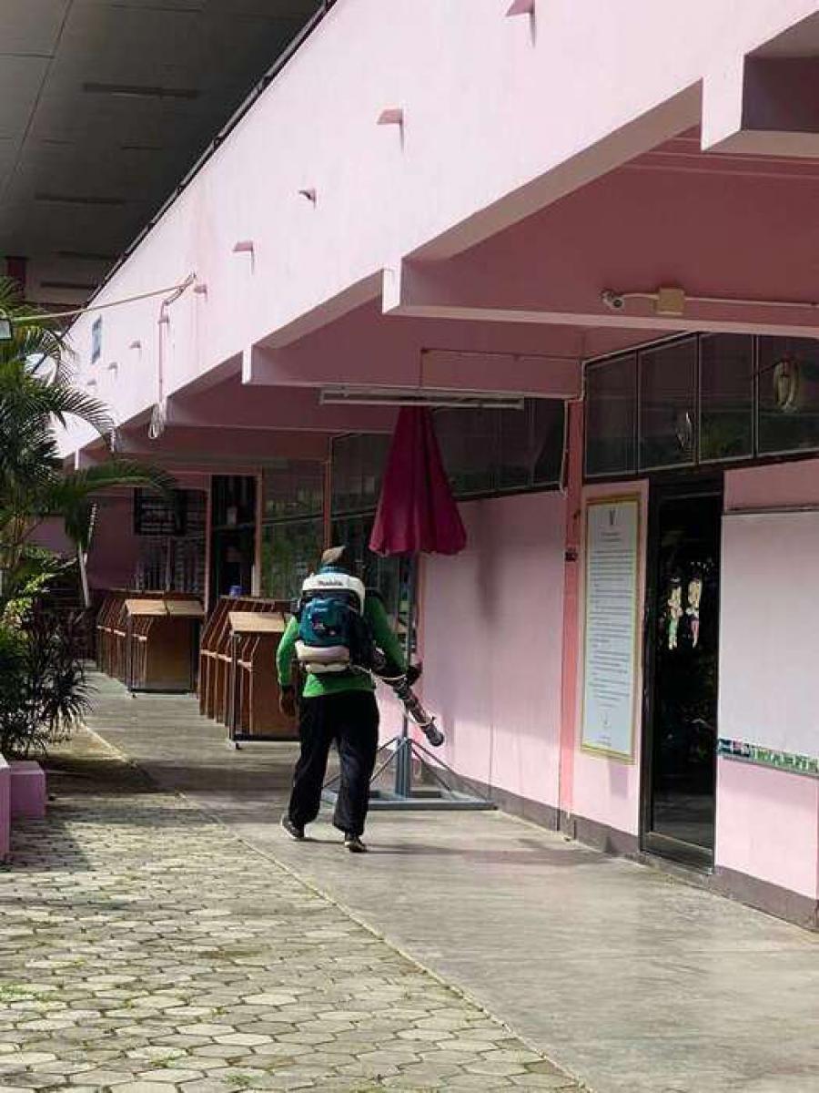 เทศบาลตำบลบ้านแป้นพ่นหมอกควันและยาฆ่าเชื้อ