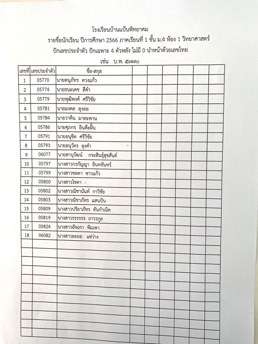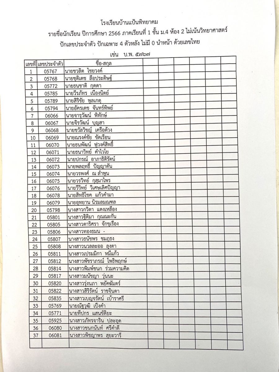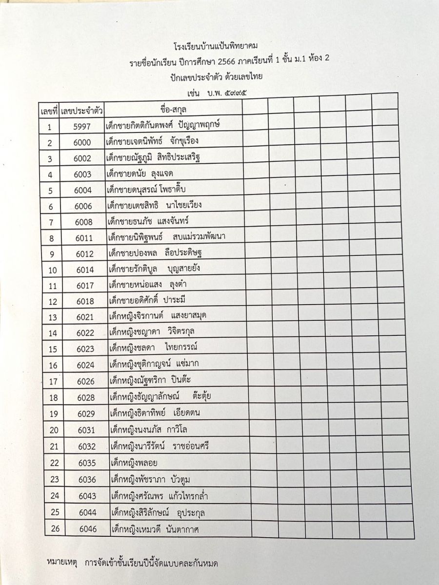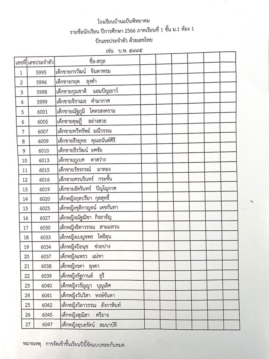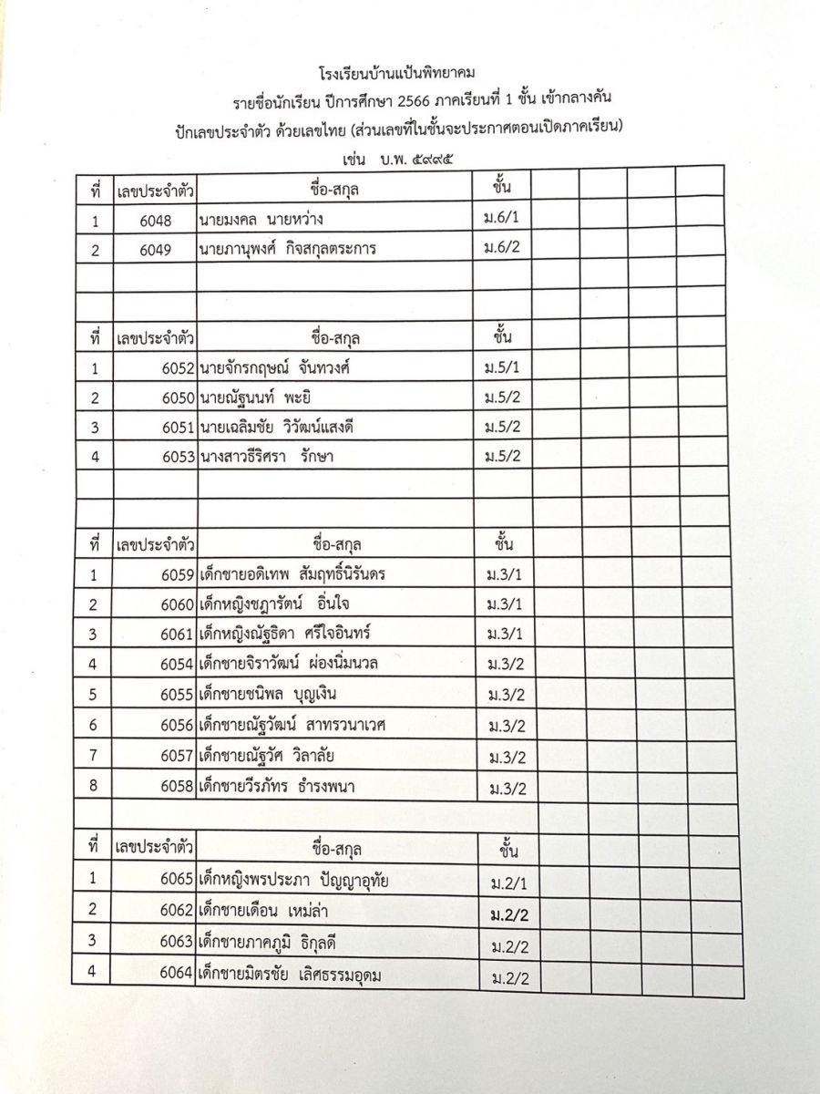 ประกาศเลขประจำตัวนักเรียน ชั้นมัธยมศึกษาปีที่ 1 มัธยมศึกษาปีที่ 4 และเข้ากลางคัน ปีการศึกษา 2566
