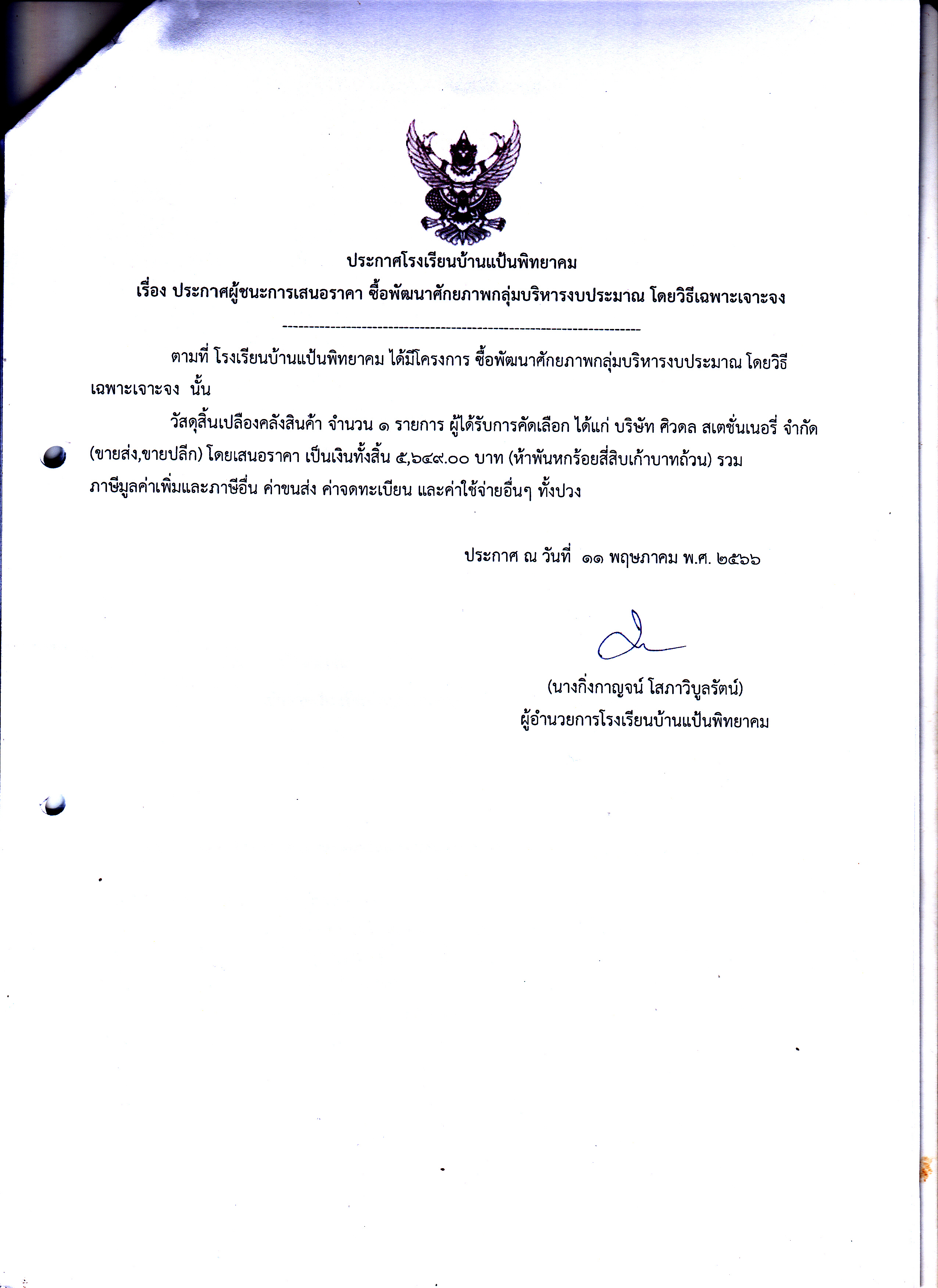 ประกาศผู้ชนะการเสนอราคา ซื้อพัฒนาศักยภาพกลุ่มบริหารงบประมาณ