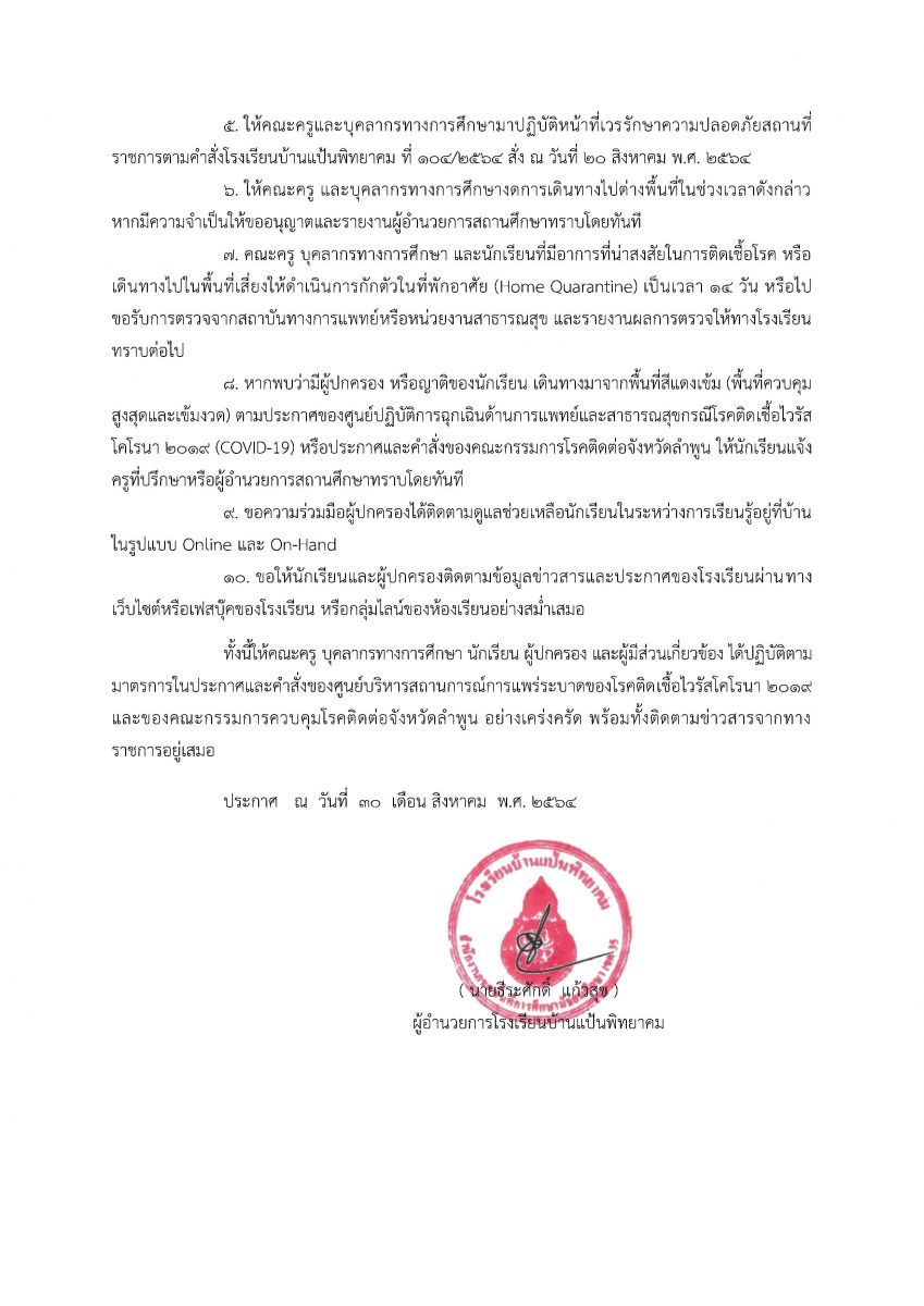 ปาะกาศเรื่องการหยุดการเรียนการสอนในรูปแบบปกติ (On-site) ด้วยเหตุพิเศษ