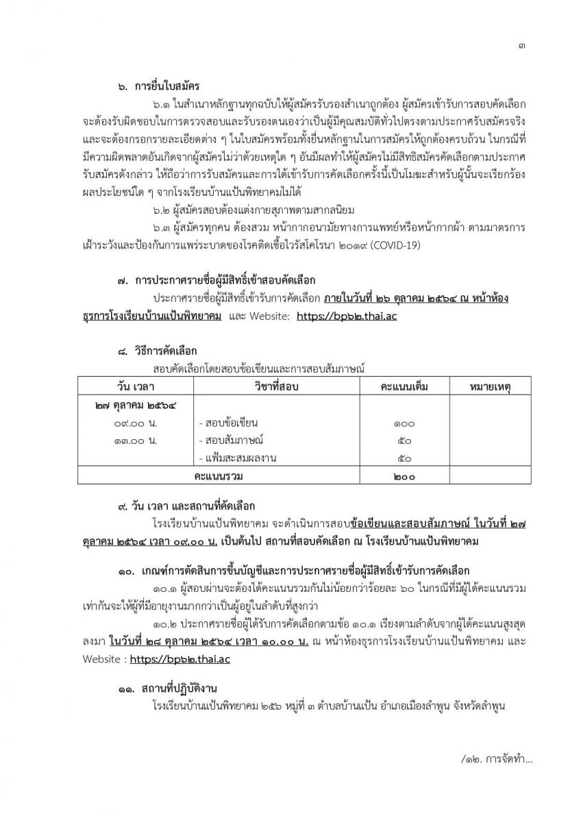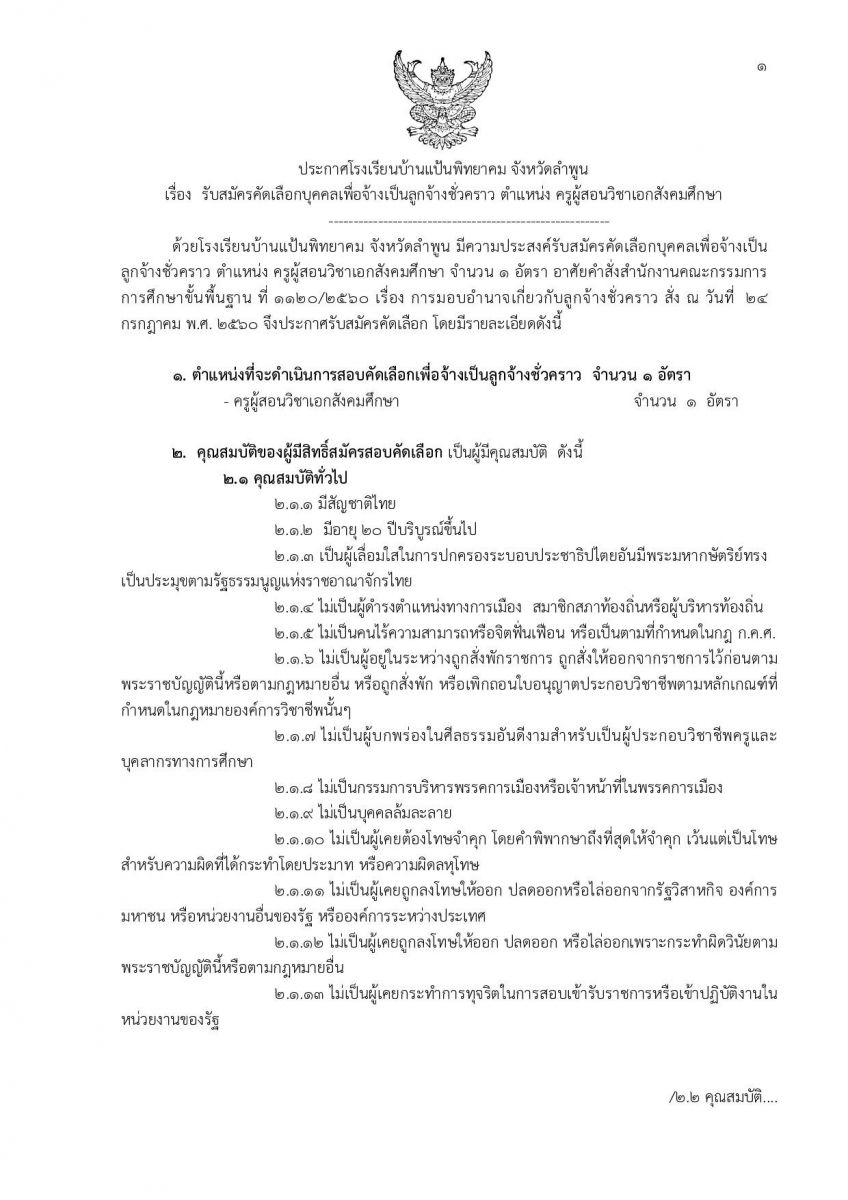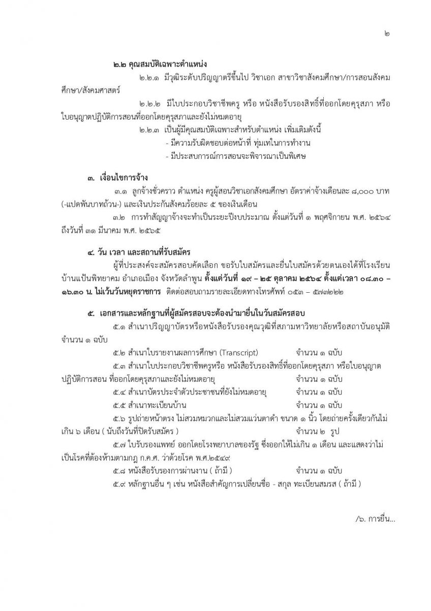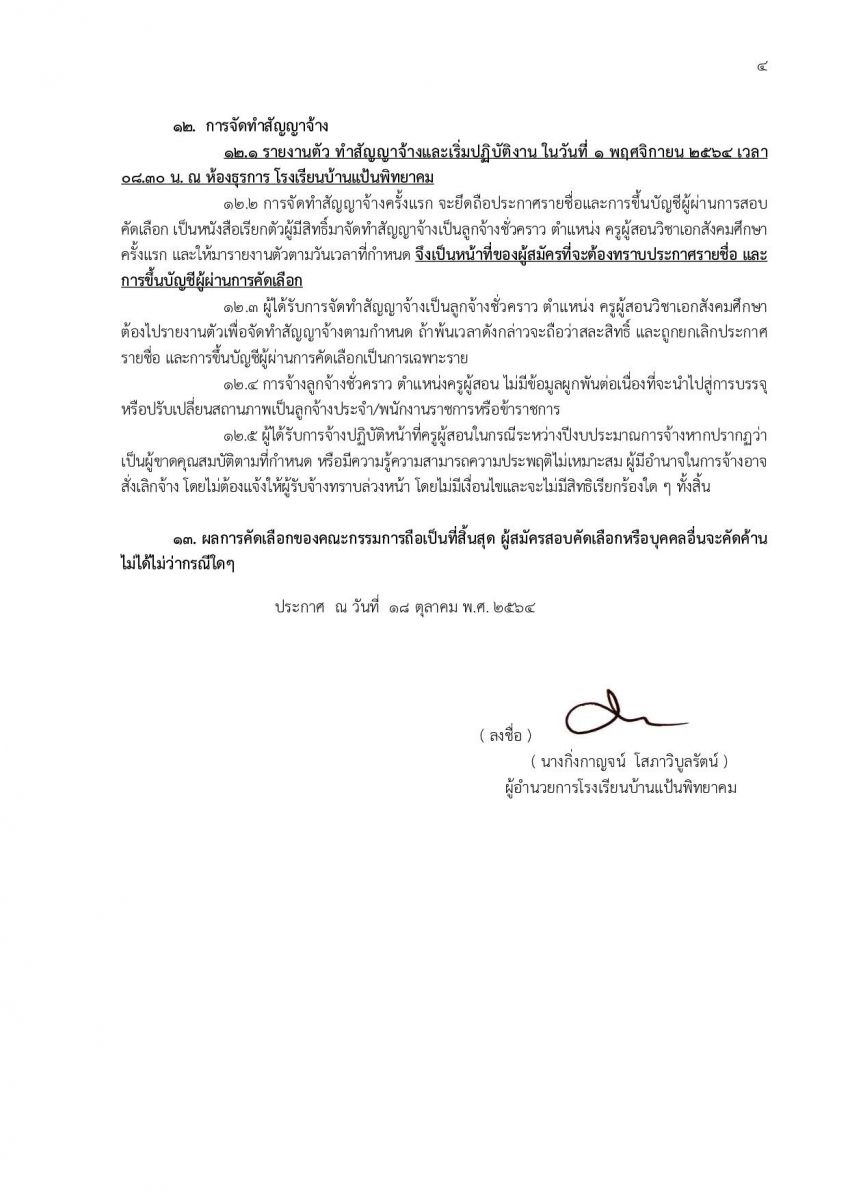 ประกาศโรงเรียนบ้านแป้นพิทยาคม เรื่อง รับสมัครลูกจ้างชั่วคราว ตำแหน่ง ครูผู้สอน วิชาเอกสังคมศึกษา ระหว่างวันที่ ๑๙ - ๒๕ ตุลาคม ๒๕๖๔ (ไม่เว้นวันหยุดราชการ)