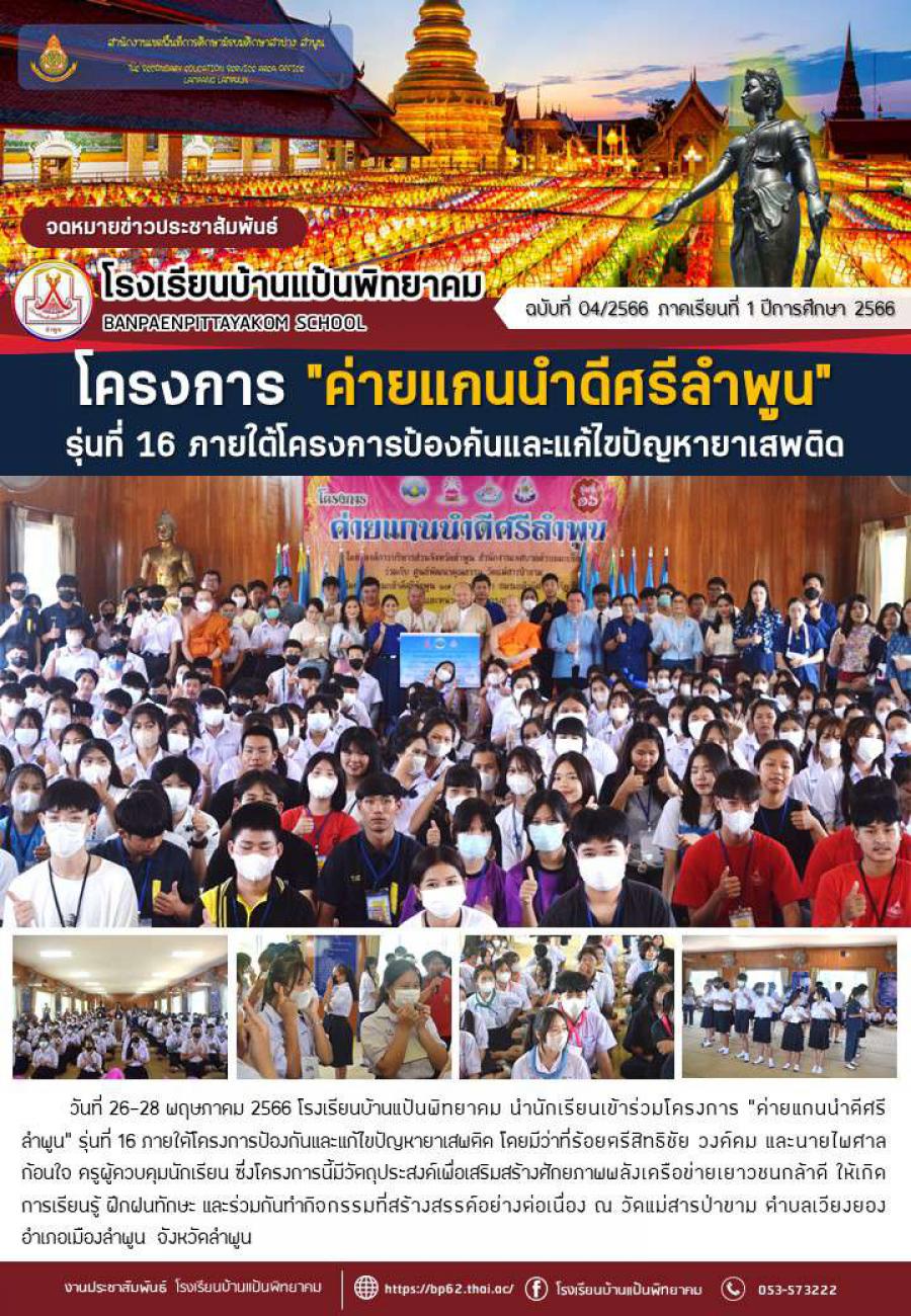 โครงการ "ค่ายแกนนำดีศรีลำพูน" รุ่นที่ 16 ภายใต้โครงการป้องกันและแก้ไขปัญหายาเสพติด