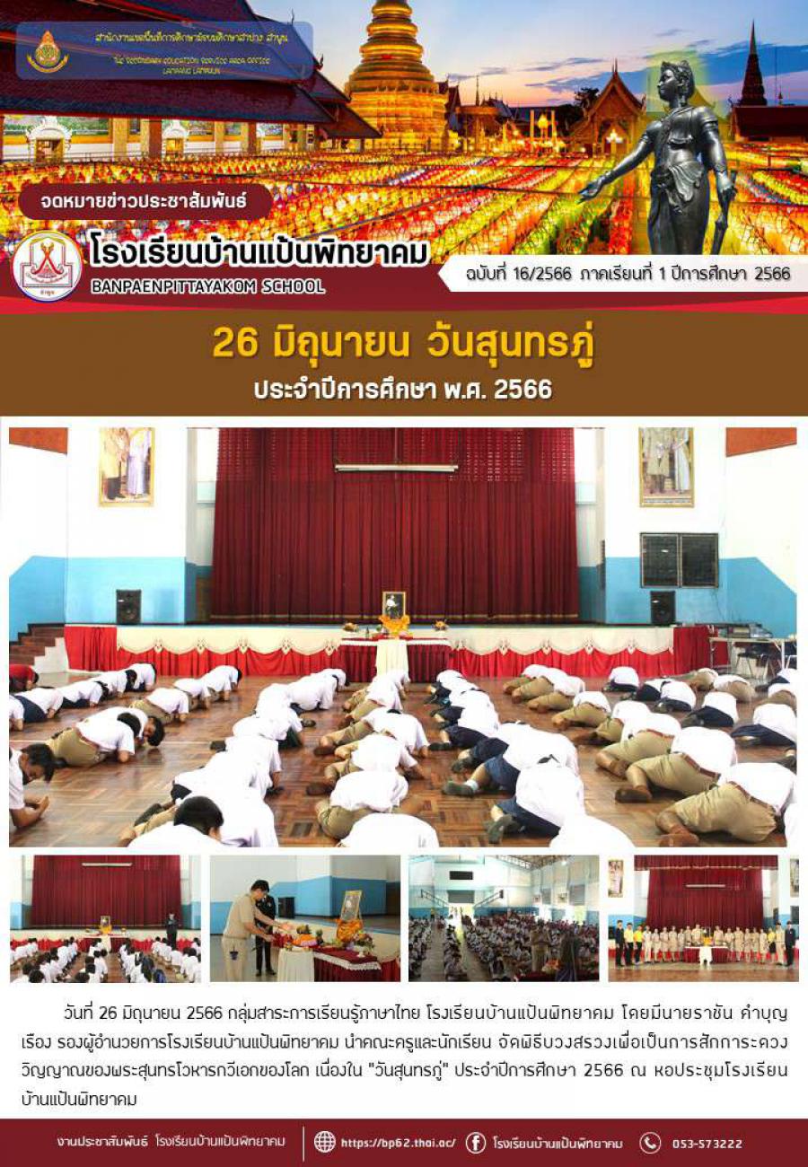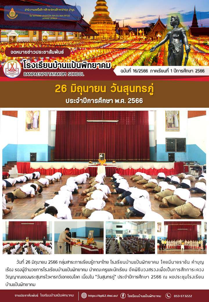 26 มิถุนายน วันสุนทรภู่ ประจำปีการศึกษา พ.ศ. 2566