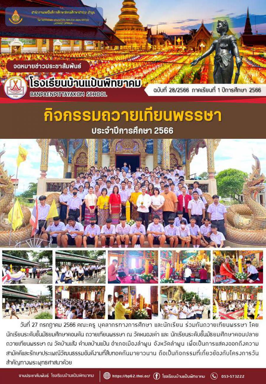 กิจกรรมถวายเทียนพรรษา ประจำปีการศึกษา 2566