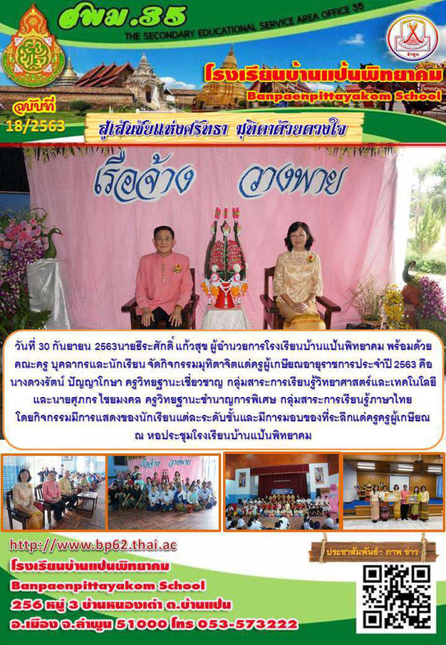 สู่เส้นชัยแห่งศรัทธา มุทิตาด้วยดวงใจ เกษียณอายุราชการประจำปี 2563 ครูดวงรัตน์ ปัญญาโกษา และครูศุภกร ไชยมงคล