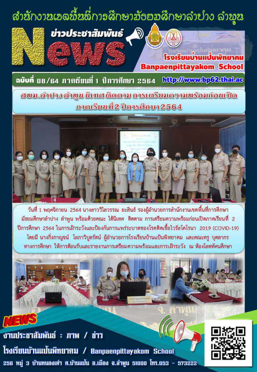 สพม.ลำปาง ลำพูน นิเทศ ติดตาม การเตรียมความพร้อมก่อนเปิด ภาคเรียนที่ 2 ปีการศึกษา 2564