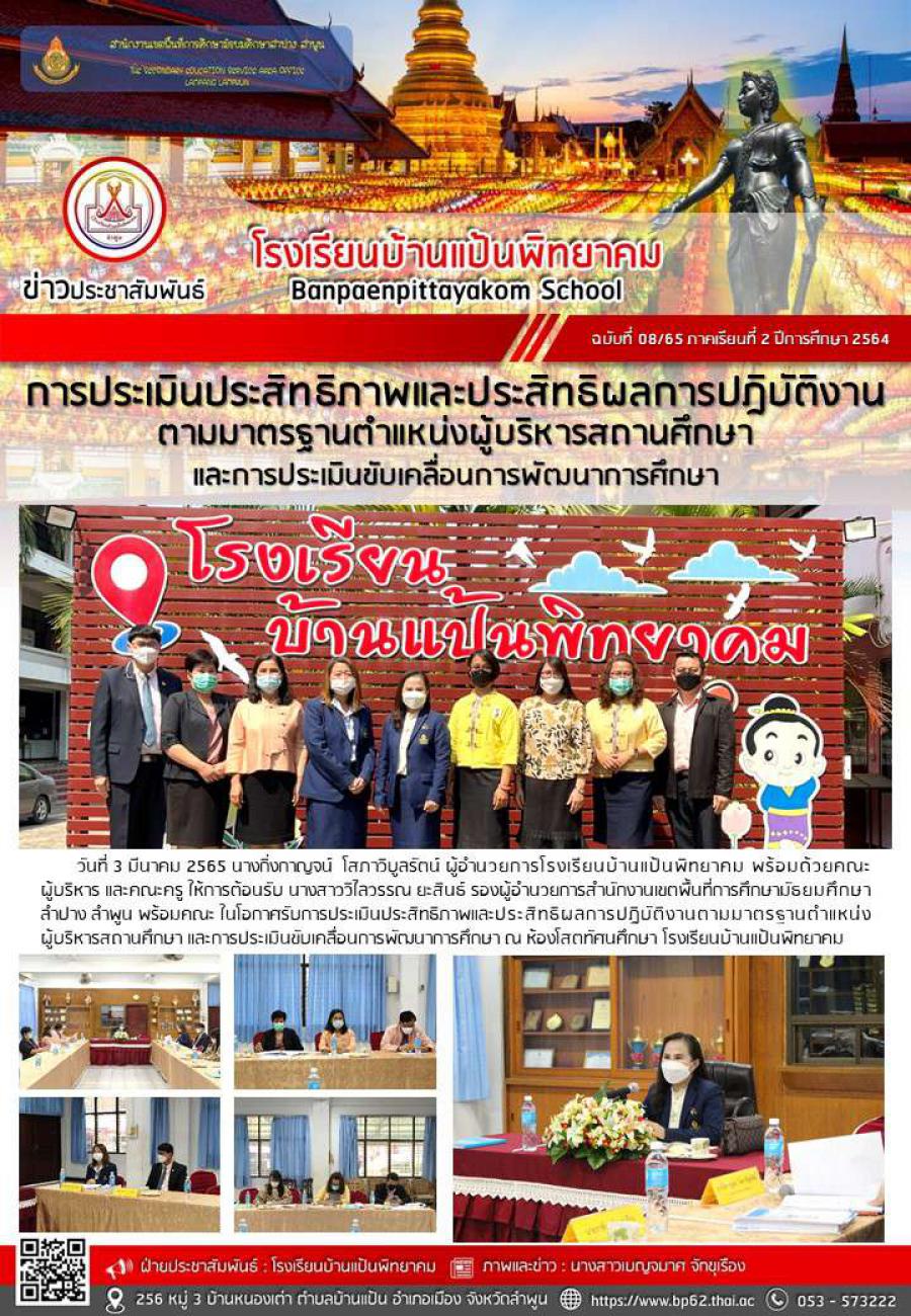 การประเมินประสิทธิภาพและประสิทธิผลการปฎิบัติงานตามมาตรฐานตำแหน่งผู้บริหารสถานศึกษาและการประเมินขับเคลื่อนการพัฒนาการศึกษา