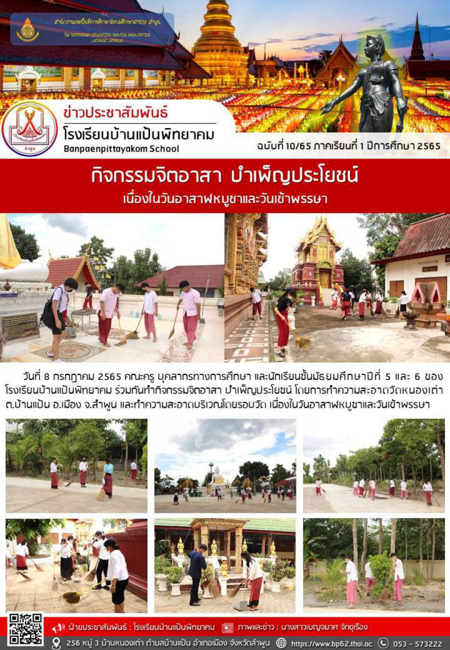 กิจกรรมจิตอาสา บำเพ็ญประโยชน์ เนื่องในวันอาสาฬหบูชาและวันเข้าพรรษา