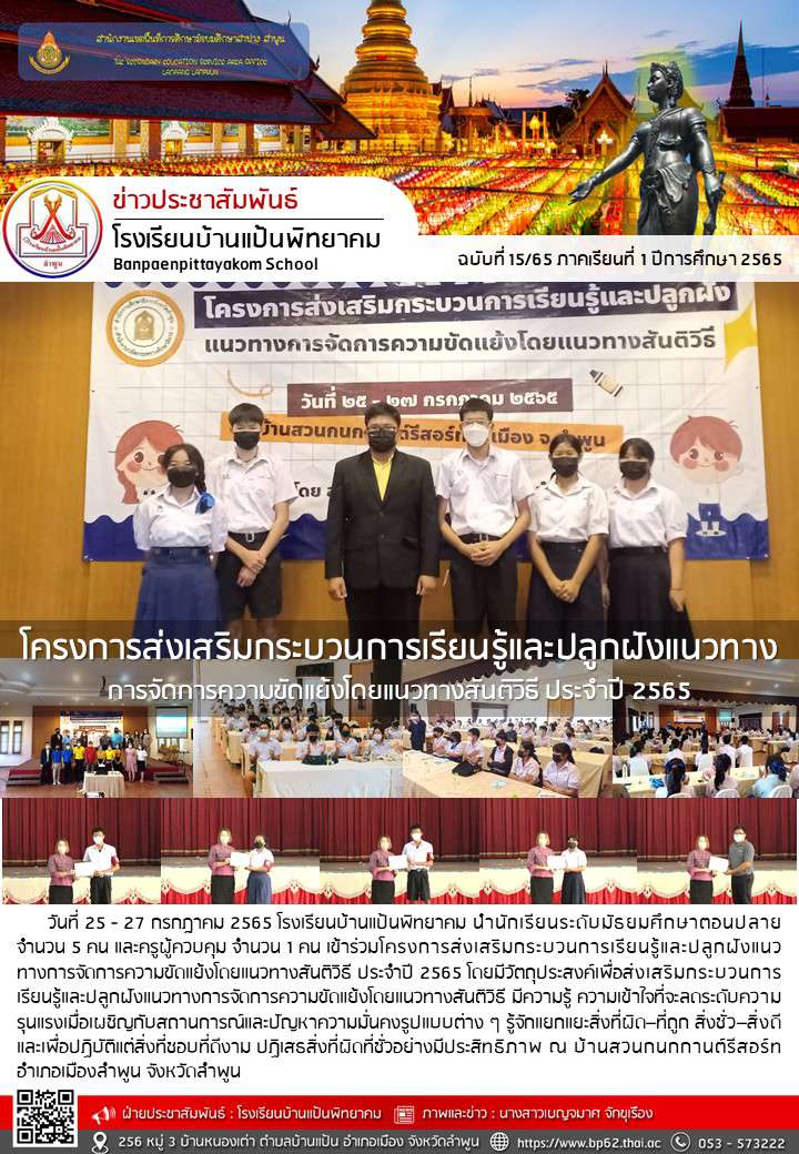 โครงการส่งเสริมกระบวนการเรียนรู้และปลูกฝังแนวทาง การจัดการความขัดแย้งโดยแนวทางสันติวิธี ประจำปี 2565