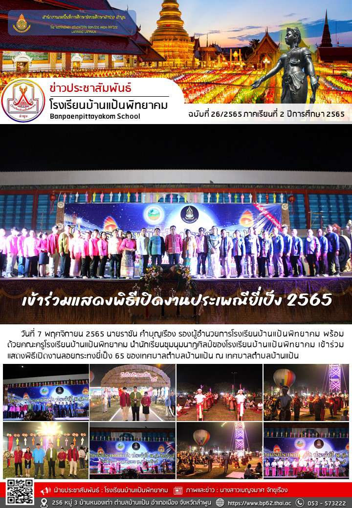 เข้าร่วมแสดงพิธีเปิดงานประเพณียี่เป็ง ประจำปี 2565