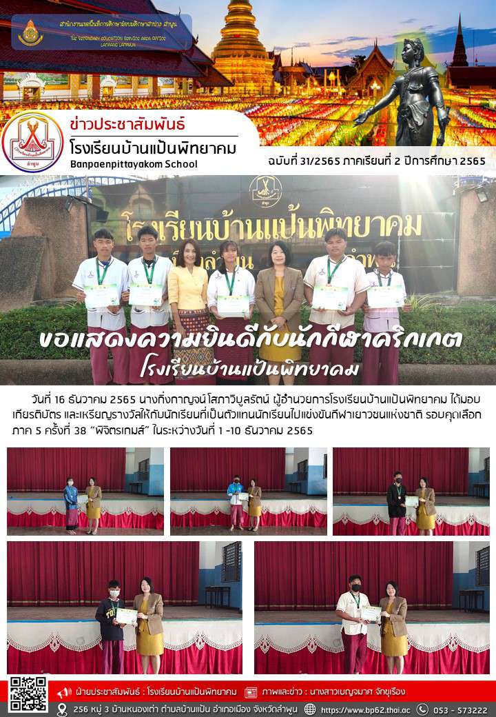 ขอแสดงความยินดีกับนักกีฬาคริกเกต โรงเรียนบ้านแป้นพิทยาคม