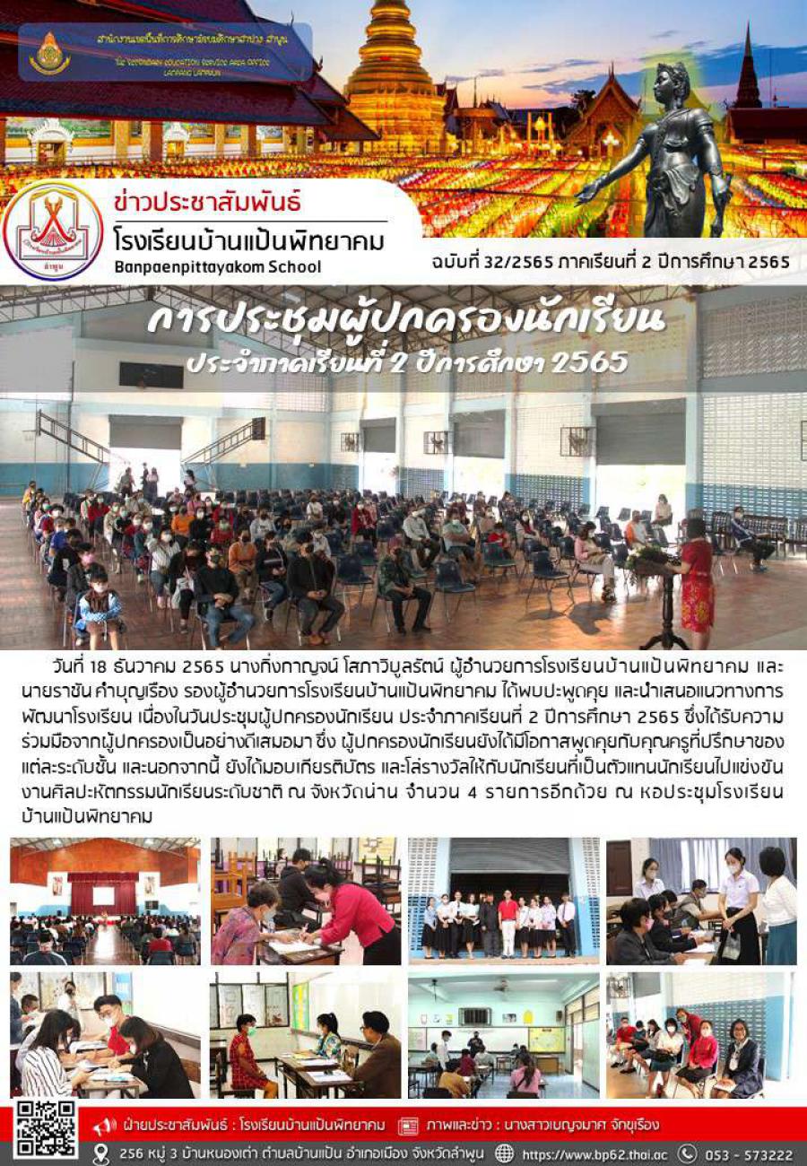การประชุมผู้ปกครองนักเรียน ประจำภาคเรียนที่ 2 ปีการศึกษา 2565